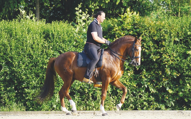 Besonderen Wert legt er auf die harmonische, aber dennoch klare Kommunikation mit dem Pferd. Im Training geben Anatomie und Muskellehre die Linie vor. Nur wenn Reiter und Pferd wissen, was sie tun, können höhere Ziele erreicht werden.